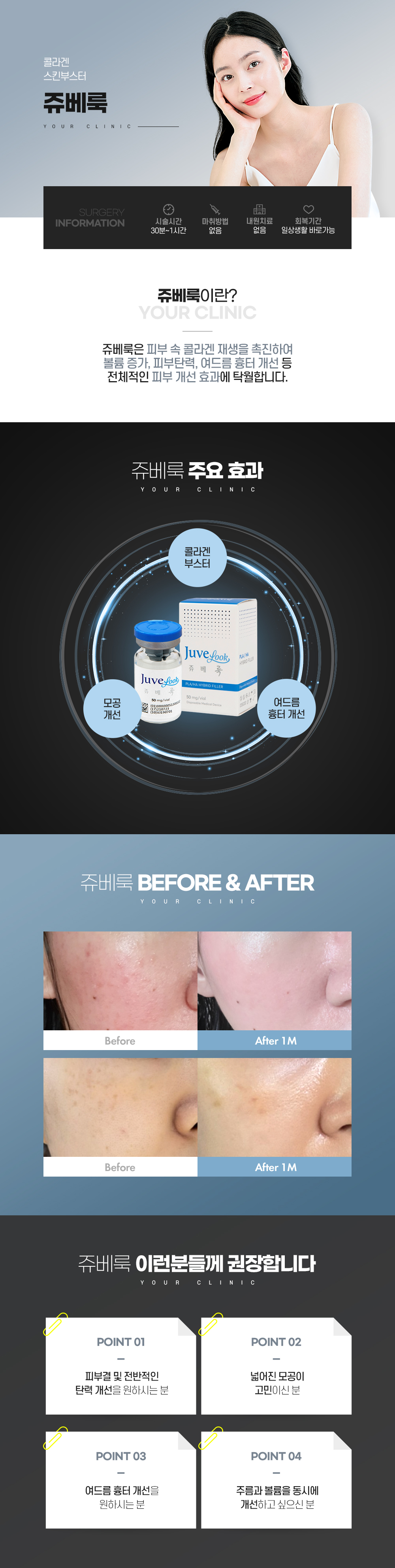 자연스러운 볼륨을 만들어 주며 피부 탄력, 잔주름, 피부결 개선에도 효과가 있습니다.
